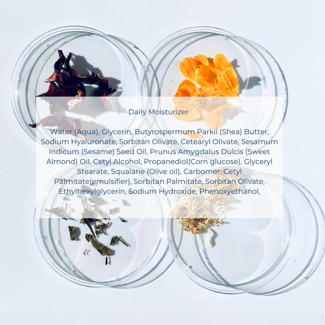 Water (Aqua), Glycerin, Persea Gratissima (Avocado) Oil, Butyrospermum Parkii (Shea) Butter, Sesamum Indicum (Sesame) Seed Oil, Cetyl Alcohol, Glyceryl Stearate, Cetearyl Olivate, Sorbitan Olivate, Cetyl Palmitate, Sorbitan Olivate, Organic Alcohol, Carbomer, Hyaluronic Acid, Sodium Hydroxide, Organic Polymer, Ethylhexylglycerin, Phenoxyethanol.