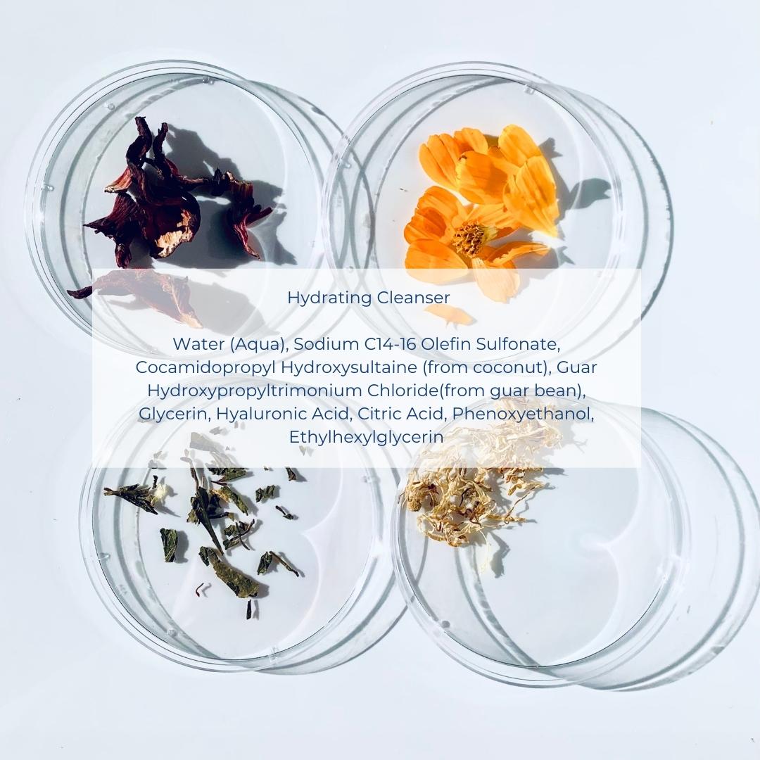 Water (Aqua), Hyaluronic Acid, Sodium C14-16 Olefin Sulfonate, Cocamidopropyl Hydroxysultaine (from coconut), Guar Hydroxypropyltrimonium Chloride (from guar bean), Glycerin, Citric Acid, Phenoxyethanol, Ethylhexylglycerin